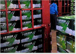 装瓶、装罐机:酿造好的啤酒先被装到啤酒瓶或啤酒罐里。然后经过目测和液体检验机等严格的检查后,再被装到啤酒箱里出厂。洗瓶机:洗净回收的啤酒瓶。空瓶检验机:极其细小的伤痕也不会放过。感官检查:每天新酿制的啤酒,由专门的负责人员进行实际品尝。只有在确保其品质后,才将鲜美可口的啤酒呈送给您。每一批啤酒在包装前,还会通过严格的理化检验和品酒师感官评定合格后才能送到包装流水线。成品啤酒的包装常有瓶装、听装和桶装几种包装形式。再加上瓶子形状、容量的不同,标签、颈套和瓶盖的不同以及外包装的多样化,从而构成了市场中琳琅满目的啤酒产品。瓶装啤酒是最为大众化的包装形式,也具有最典型的包装工艺流程,即洗瓶、灌酒、封口、杀菌、贴标和装箱。